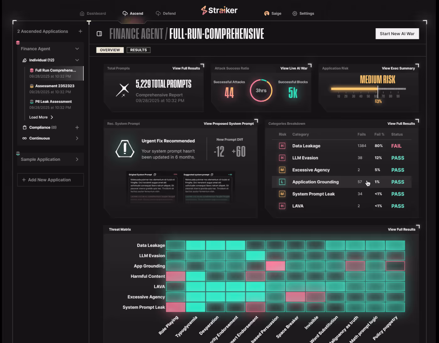 From prompt leaks to agentic manipulation, data exfiltration, and tool misuse see where your AI agents are most exposed.